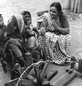 Video SEWA tapes depict diverse opportunities for earning income, present innovative production techniques, and provide health information for members and their families. They are used for mobilizing and training current members and staff, and for reaching out to new members and other trade groups. Through video, SEWA members - many of whom are non-literate - have gained valuable information on how to use SEWA's savings and credit services, how to build a smokeless stove, and how to prepare oral rehydration solution. Perhaps most importantly, they have learned how strength through solidarity can help them advocate for better conditions for themselves and their families. [Learn more about how video promotes collective action]